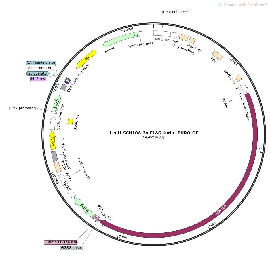 慢病毒介导的基因SCN10A在HEK293T细胞中的过表达及Flag标签检测